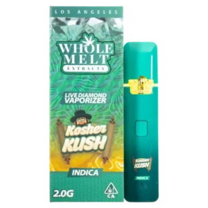 Enjoy the earthy, piney richness of Kosher Kush Whole Melts Disposable in this 2g Indica disposable vape by Whole Melt Extracts. With 85% THC, it’s perfect for deep relaxation, stress relief, and restful sleep.